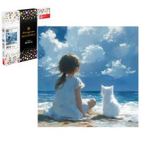 Алмазная мозаика (набор для творчества), ДЕВОЧКА С КОТЕНКОМ НА МОРЕ, 30*30 см 71393