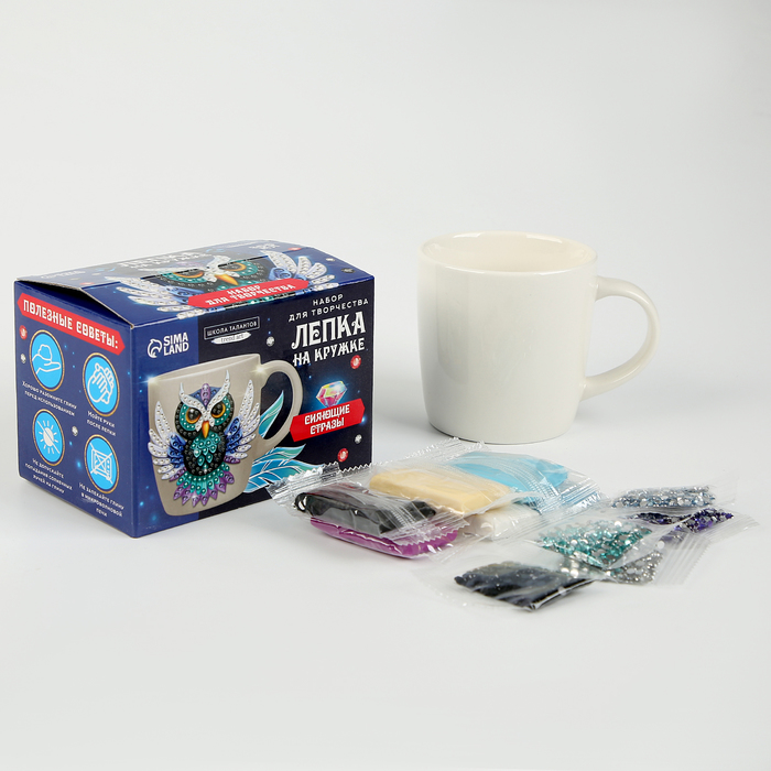 Декор кружки полимерной глиной. Лепка на кружке «Ночная сова», со стразами, набор для творчества 9728538
