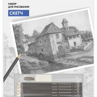 Скетч для раскрашивания чернографитными карандашами А4 "Мельница у воды" 1 лист (чернографитные карандаши, точилка, ластик) 10+ е/п ФРЕЯ RPSB-0012