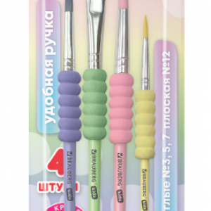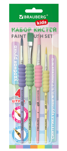 Описание: Набор из четырёх кистей разного размера c мягкой EVA-вставкой BRAUBERG KIDS позволяет начинающим художникам решать любые творческие задачи в детском саду, школе и дома.Кисти из синтетики отлично впитывают и отдают краску, хорошо держат форму, долговечны и надежны. Благодаря кистям № 3, 5, и 7 ребенку будет комфортно прорисовывать мелкие детали. Кисть № 12 позволит делать более крупные мазки и линии. Пластиковую рукоятку c мягкой EVA-вставкой удобно держать в руке.