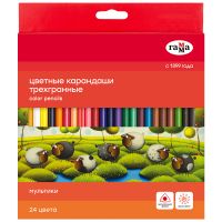 Набор карандашей цветныхГамма "Мультики", 24цв., трехгранные, заточен., картон. упак., европодвес 343207 290122_24