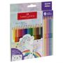 Набор цветных карандашей "Unicorn" от легендарного немецкого производителя Faber-Castell состоит из 18 цветных карандашей шестигранной формы и 6 карандашей пастельных трендовых оттенков. Грифель изготовлен из высококачественных пигментов ярких оттенков. Карандаши обеспечивают легкое скольжение и комфортное рисование на бумаге любого типа. Благодаря специальной технологии крепления SV он не ломается при падении и затачивании. На дополнительных карандашах есть маркировка на корпусе для внесения имени. Отличный вариант для подарка юным художникам! • Количество цветов: 24; • Форма корпуса: шестигранная; • Заточка грифеля: да; • Количество карандашей: 24.