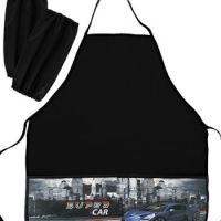 Фартук для труда с нарукавниками DD-193 "Спорткар" черный с рисунком, полиэстер, с 2 карманами, в ПВХ-пакете 329975
