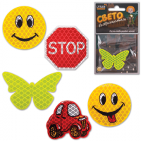Значок световозвращающий в ассорти-те (смайл с улыбк/языком,машинка, STOP, бабочка)610565