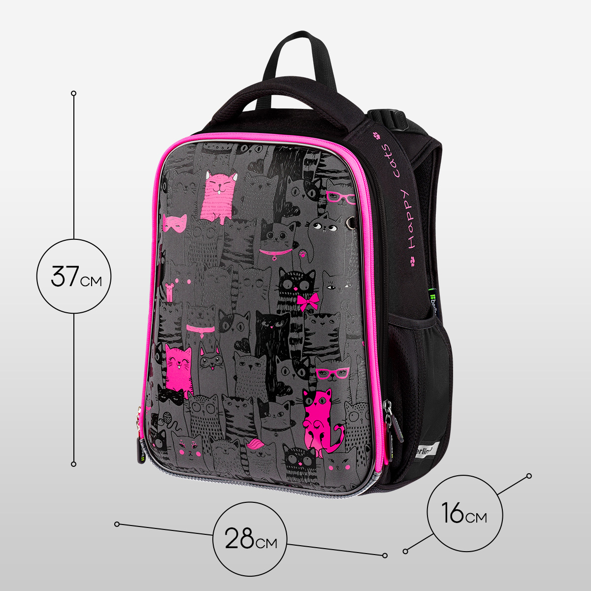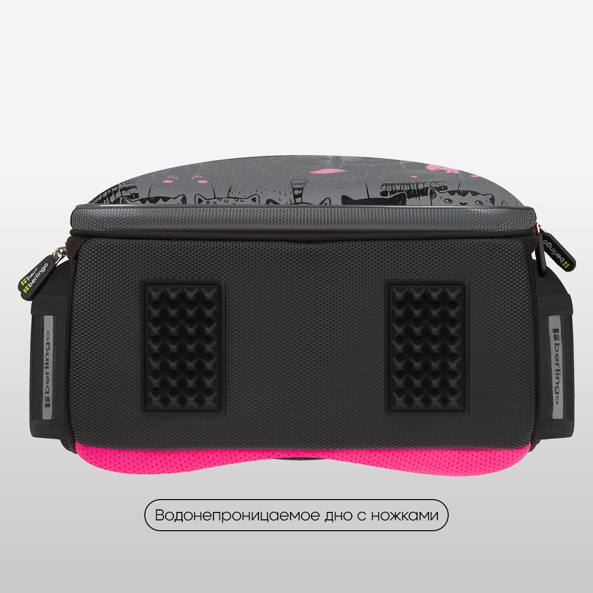 Эргономичный ранец Berlingo серии Expert размером 37*28*16 см подходит для детей младшего и среднего школьного возраста. Модель выполнена из экологичного ЭВА-материала с покрытием из высокопрочной нейлоновой ткани кордура, которая обладает водоотталкивающими свойствами и легко чистится. Ранец имеет 2 отделения, 2 боковых кармана на резинке, съемный кошелек на лямке для быстрого доступа к необходимым вещам. Внутри предусмотрены разделители для учебных пособий, органайзер для письменных принадлежностей, карман для мобильного телефона, съемный карабин для ключей и именная карточка для подписи. Благодаря анатомической вентилируемой спинке, регулируемым по длине и высоте лямкам, а также нагрудному креплению ранец плотно фиксируется на спине ребенка, что помогает равномерно распределить нагрузку и сохранить правильную осанку. Уплотненная мягкая ручка и петля для подвешивания к парте делают ранец очень удобным. Дно выполнено из водонепроницаемого материала с пластиковыми ножками для защиты от влаги. Световозвращающие элементы на лямках, передней и боковых частях ранца обеспечивают безопасность ребенка в темное время суток. Вес ранца менее 1 кг.