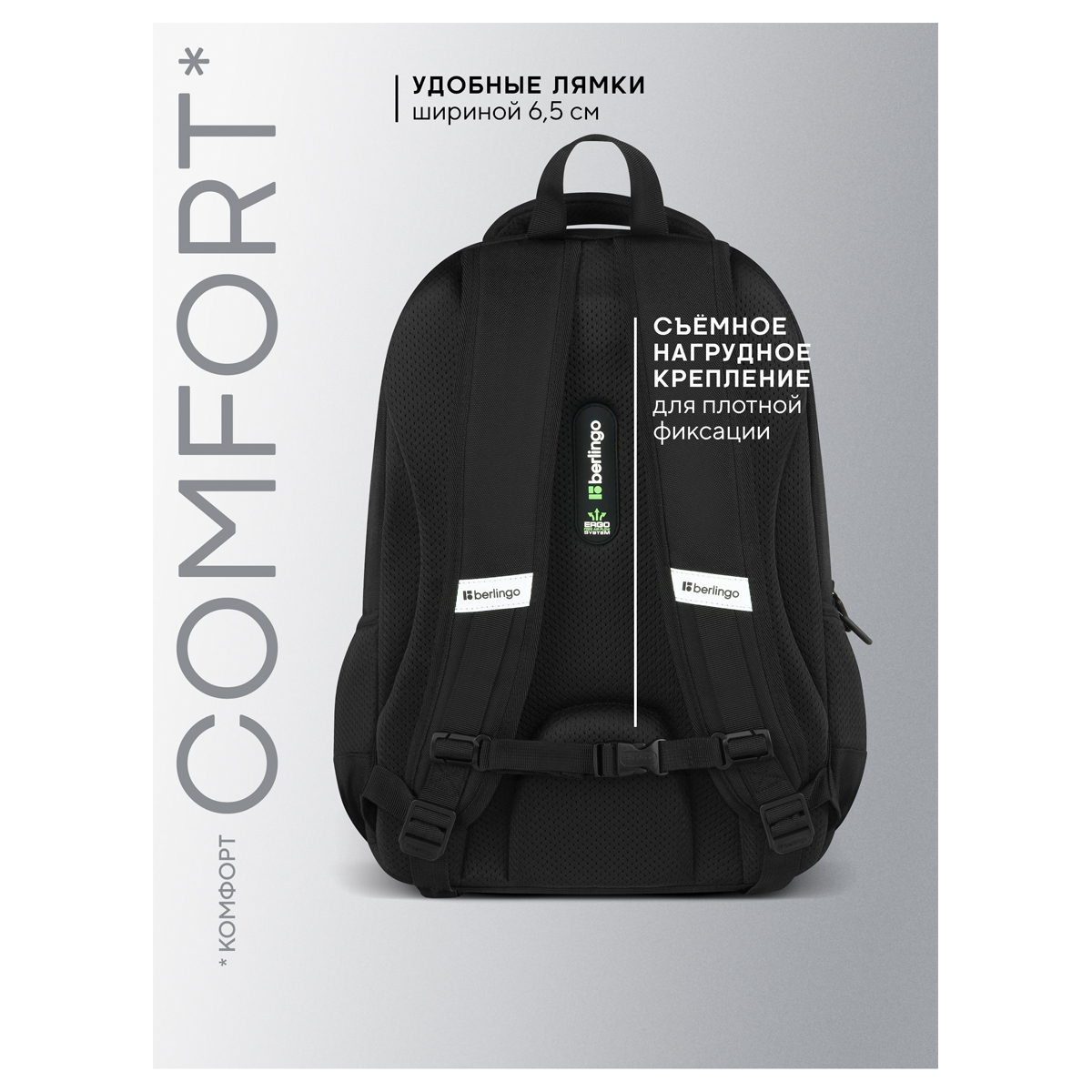 Рюкзак Berlingo серии U1 — отличный выбор для детей среднего и старшего школьного возраста. Имеет два отделения и четыре кармана. В него поместится всё необходимое. Размер рюкзака - 44*31*18 см, объем - 24 литра. Внутри — один карман на резинке и удобный органайзер. Рюкзак сделан из прочного полиэстера. Эргономичная вентилируемая спинка с мягкими спонжевыми подушечками, широкие регулируемые лямки и съемное нагрудное крепление обеспечивают равномерное распределение нагрузки на позвоночник. Уплотненное дно, плотная ручка для переноски и ручка-петля делают рюкзак максимально удобным. Светоотражающие элементы с 4-х сторон помогают обеспечить безопасность ребенка в темное время суток. Рюкзак закрывается на пластиковую молнию с удобными бегунками. Изделие упаковано в пакет.