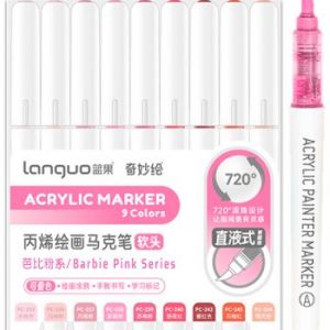 Маркер акриловый 9 цв. DO-581 "Розовые" 1-5мм, кисть, круглый белый корпус, в уп ПВХ