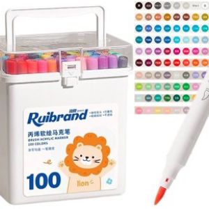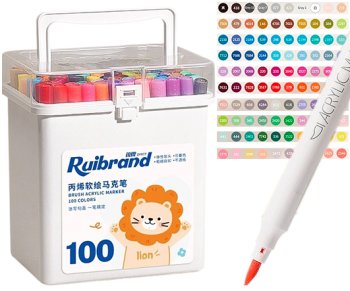 Маркер акриловый 100 цв. DN-29/DP-209 1-4мм, кисть, круглый белый корпус, в пластиковом боксе DY977-100