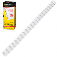 Пружины пласт. д/переплета BRAUBERG, КОМПЛЕКТ 100шт, 14 мм (для сшивания 81-100л), белые