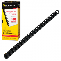 Пружины пласт. д/переплета BRAUBERG, КОМПЛЕКТ 100шт, 19 мм (для сшивания 121-150л), черные