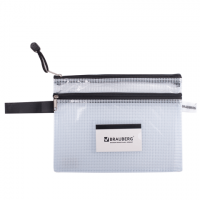 Папка-конверт на молнии BRAUBERG "Solid", А4, 335*243мм, ПВХ, "сетка", 0,3мм, 2 отд, прозр, 223889