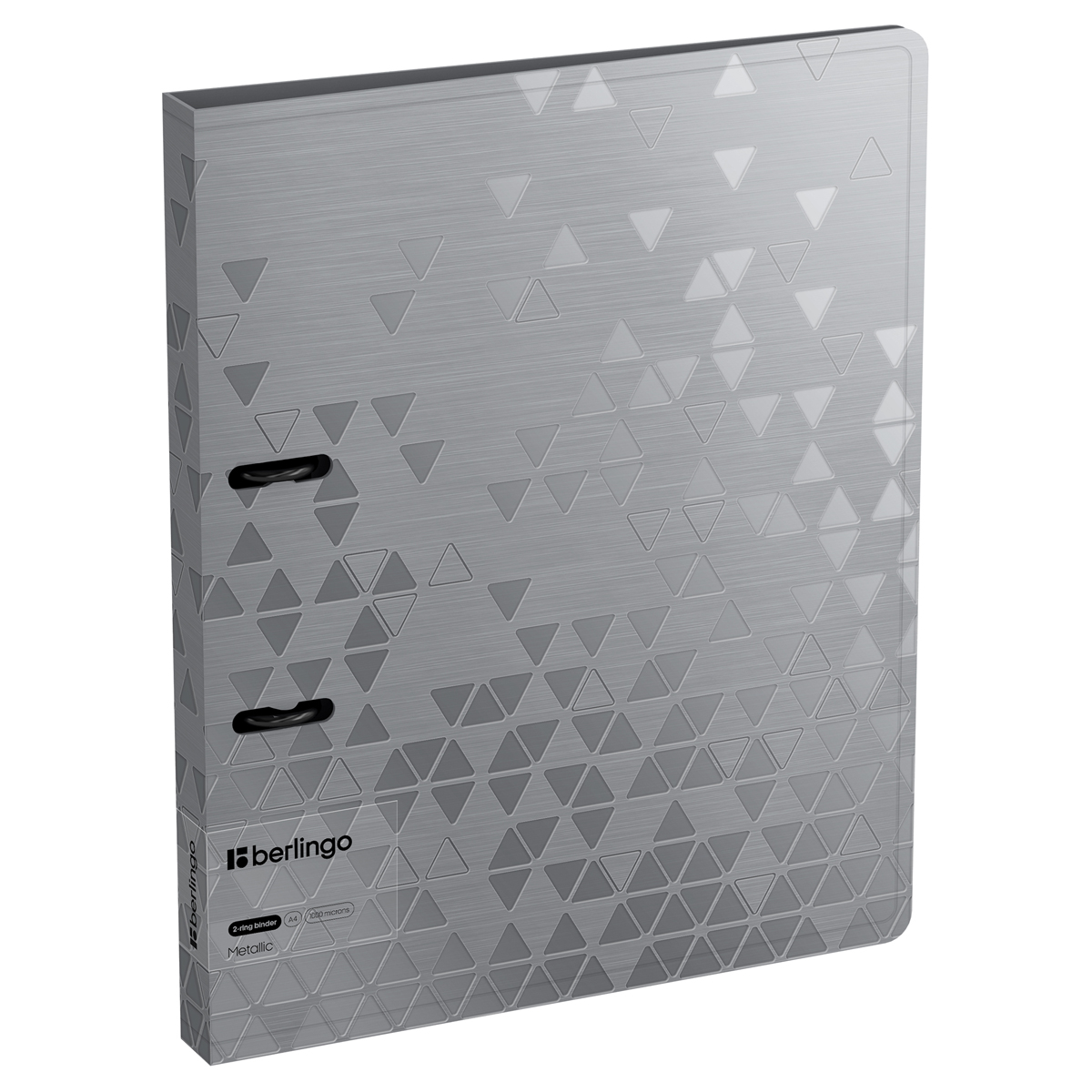 Описание: Папка пластиковая на 2 D-кольцах Berlingo "Metallic" формата А4 с рисунком. Стильные черные кольца и фурнитура. Специальная D форма колец помогает удобно и ровно хранить документы, которые могут быть выровнены по левому краю, благодаря боковой вертикальной стенке кольца. Диаметр колец 20мм. Специальные формовые отверстия в обложке служат для надежного защелкивания папки в сложенном виде, предотвращают случайное открытие обложки и замятие документов внутри при хранении и транспортировке. Изготовлена из высококачественного полипропилена с матовой текстурой поверхности "треугольники", на которой не видно отпечатков пальцев и мелких царапин. Предназначена для хранения документов. Толщина обложки 1000мкм. На внутренней стороне обложки оснащена плотным прозрачным карманом для удобного хранения мелочей: ручки, заметок, визиток, дисков, флешек и др. Папка вмещает до 150 листов. Упакована в индивидуальный прозрачный пакет по форме.