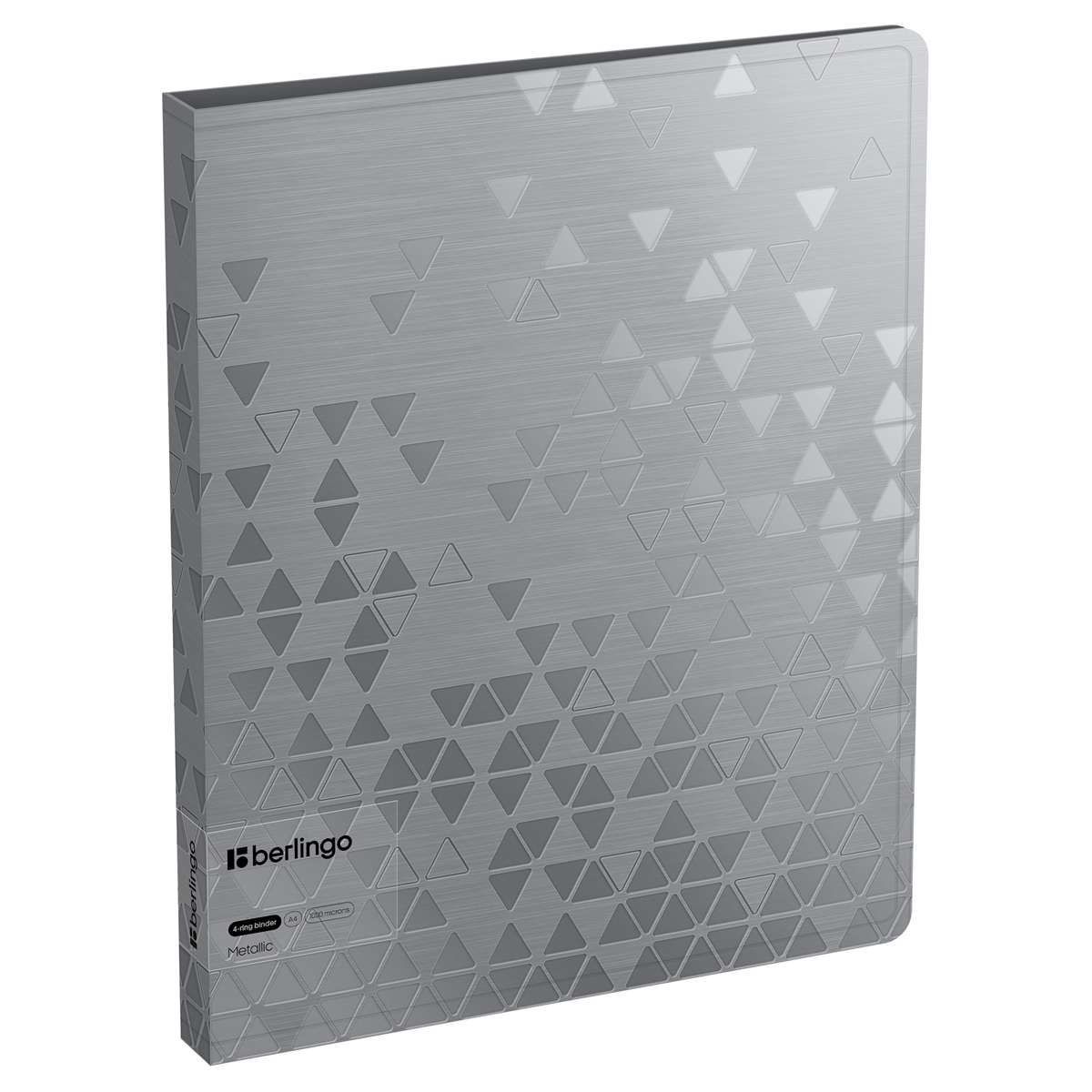 Описание: Папка на 4 D-кольцах Berlingo серии Metallic формата А4 – стильный аксессуар для офиса и учёбы. Изготовлена из высококачественного полипропилена с матовой текстурой поверхности «рельефные треугольники», на которой не видно отпечатков пальцев и мелких царапин. Толщина обложки – 1000 мкм. Ширина корешка составляет 24 мм. Стильные черные кольца и фурнитура. Специальная D-форма колец диаметром 20 мм помогает удобно и ровно хранить документы, которые могут быть выровнены по левому краю, благодаря боковой вертикальной стенке кольца. Вместимость папки – 150 листов. На внутренней стороне обложки папка оснащена плотным прозрачным карманом для удобного хранения мелочей: ручки, заметок, визиток, дисков, флешек и др. Размер папки составляет 310*250*24 мм. Упакована в индивидуальный прозрачный пакет по форме. • Вместимость, в листах: 150; • Формат: А4; • Цвет: серебряный металлик; • Ширина корешка: 24 мм