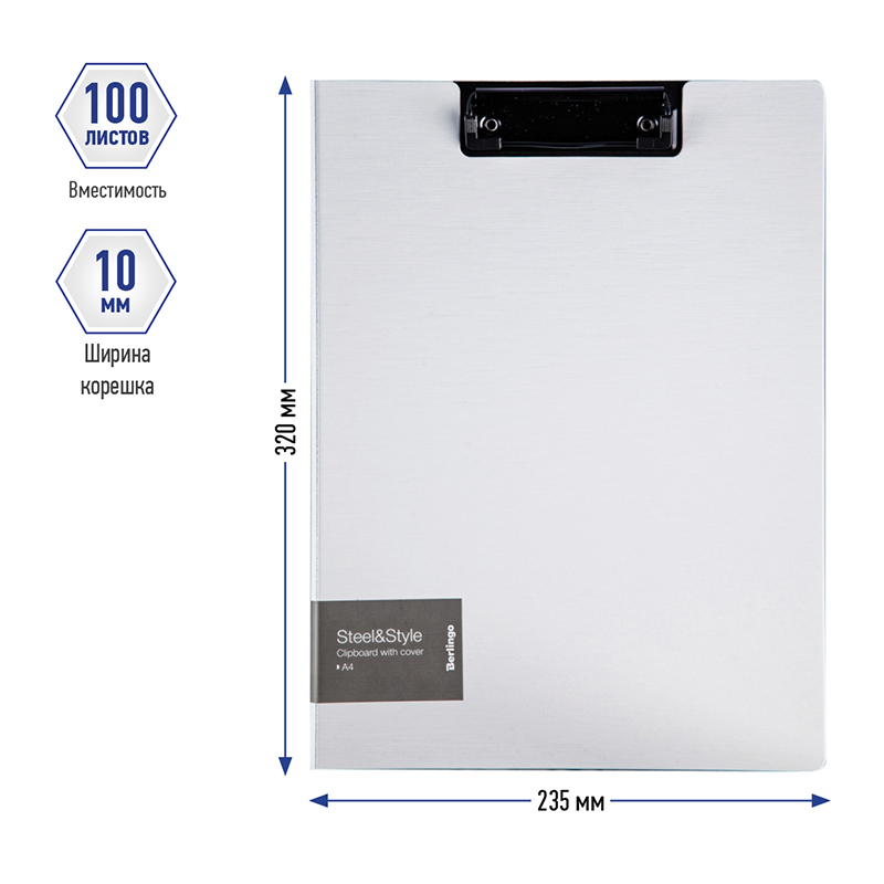 Описание: Стильная и удобная папка-планшет с прижимом Berlingo серии Steel&Style формата А4 позволяет делать записи на весу. Изготовлена из полифома толщиной 1800 мкм. Вмещает до 100 листов. Ширина корешка - 10 мм. Папка-планшет имеет насыщенный белый цвет внешней стороны в сочетании с фактурой "сталь" и чёрный цвет внутренней поверхности с чёрным прижимом. Металлический зажим надёжно фиксирует документы, не повреждая их. Размер папки-планшета - 320*235 мм. Упакована в индивидуальный пакет с липким краем. • Вместимость, в листах: 100; • Формат: А4; • Цвет: белый; • Ширина корешка: 10 мм