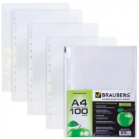 Папки-файлы А4, вкладыш с перфорацией, 35 мкм, 100 шт./упак., BRAUBERG" Яблоко, 221710