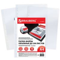Папки-файлы перфорированные, А4, BRAUBERG, объёмные, до 200 л., комплект 10 шт., гладкие, 180 мкм, 226833