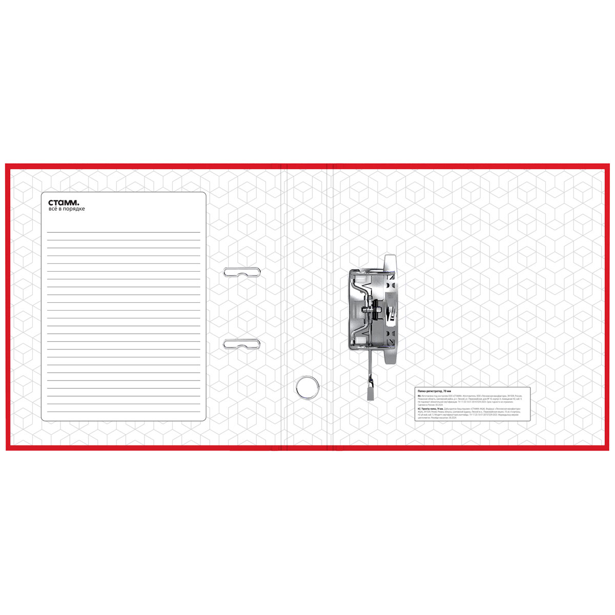 Папка-регистратор «СТАММ» серии «Стандарт» формата А4 с арочным механизмом идеальна для создания архива и экономии офисного пространства. Папка вмещает до 550 листов. Размер папки – 320*290*70 мм. Ориентация папки – вертикальная. Ширина корешка составляет 70 мм. Минималистичный классический дизайн: папка выполнена в насыщенном красном цвете. Изготовлена из жесткого износостойкого картона с односторонним покрытием из бумвинила. Папка имеет арочный механизм из качественного металла. Конструкция разработана с учетом всех особенностей эксплуатации. Эргономичное отверстие в корешке помогает быстро снять папку с полки. На корешке папки есть карман со сменным информационным ярлыком для маркировки. На внутренней стороне обложки папка-регистратор имеет поле для записи. • Вместимость, в листах: 550; • Формат: А4; • Цвет: красный; • Ширина корешка: 70 мм