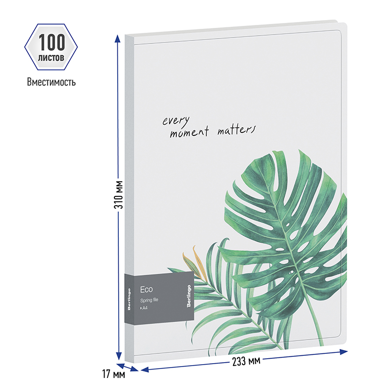 Описание: Папка с пружинным скоросшивателем Berlingo серии Eco формата А4 станет функциональным помощником для хранения документов со стильным рисунком на обложке белого цвета. Ширина корешка составляет 17 мм. Папка вмещает 150 листов. Папка изготовлена из высококачественного полипропилена толщиной 0,6 мм с матовой текстурой поверхности "песок", на которой не видно отпечатков пальцев и мелких царапин. Внутренняя поверхность папки имеет белый цвет, а скоросшиватель выполнен в чёрно-красном цвете. Размер папки – 310*233*17 мм. На внутренней стороне папки присутствует дополнительный прозрачный пластиковый карман для хранения мелочей: ручки, заметок, визиток, дисков, флешек и др. Упакована в индивидуальный прозрачный пакет. • Вместимость, в листах: 150; • Формат: А4; • Цвет: рисунок; • Ширина корешка: 17 мм