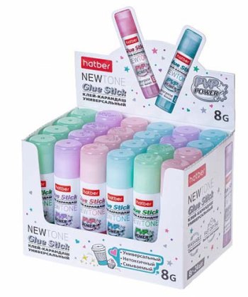 Клей-карандаш Hatber 8 гр. Хатбер NEWtone в картонной Дисплей-витрине GS_067210