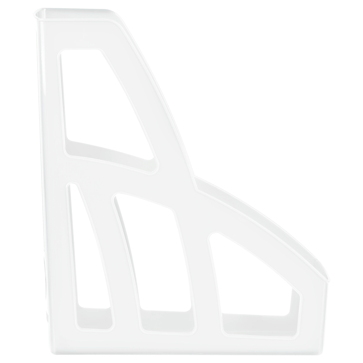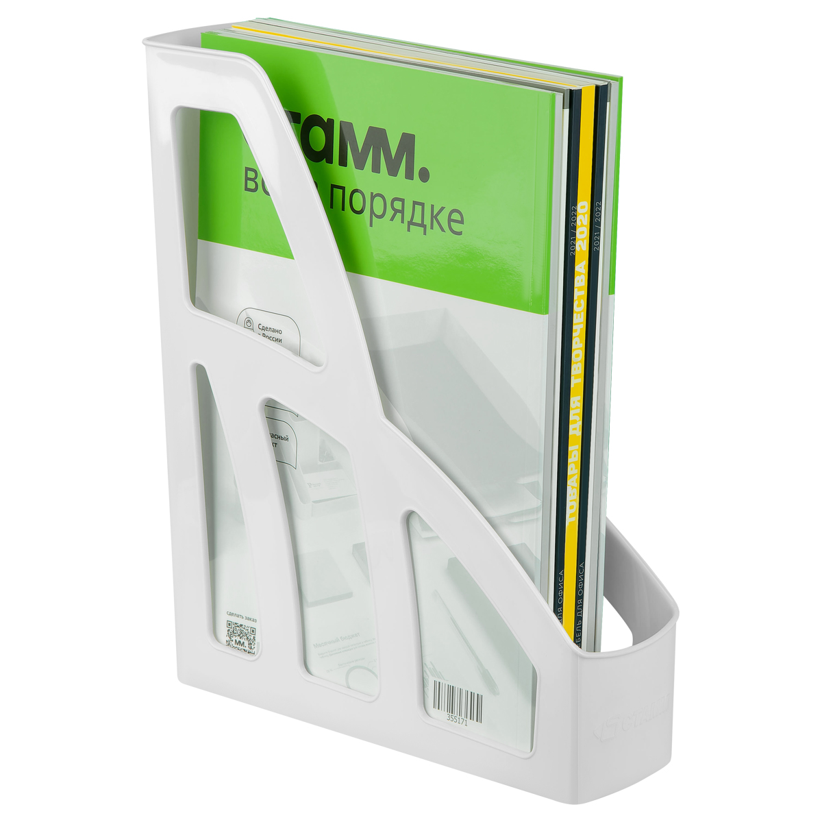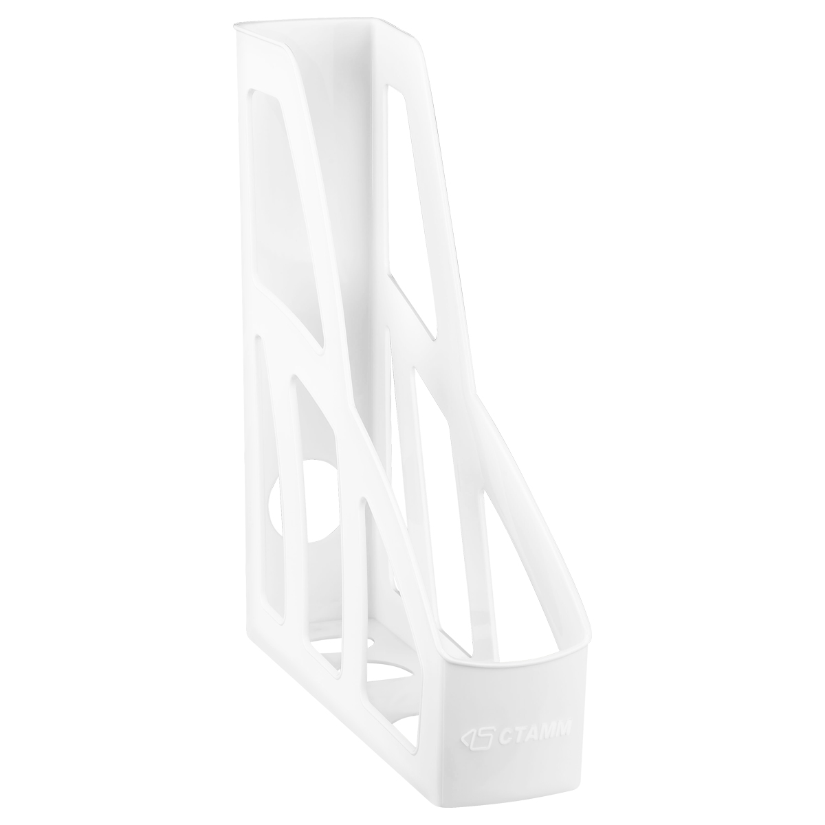 Лоток для бумаг вертикальный "СТАММ" серии "Лидер" предназначен для хранения и систематизации бумажной продукции формата А4. Оригинальный дизайн, лёгкий, устойчивый и прочный корпус. Имеет отверстие на торцевой части для удобной переноски. Изготовлен из качественного пластика. Цвет лотка - белый. Изделие высотой 297мм, глубиной 250мм, шириной 75мм вмещает до 550 листов.