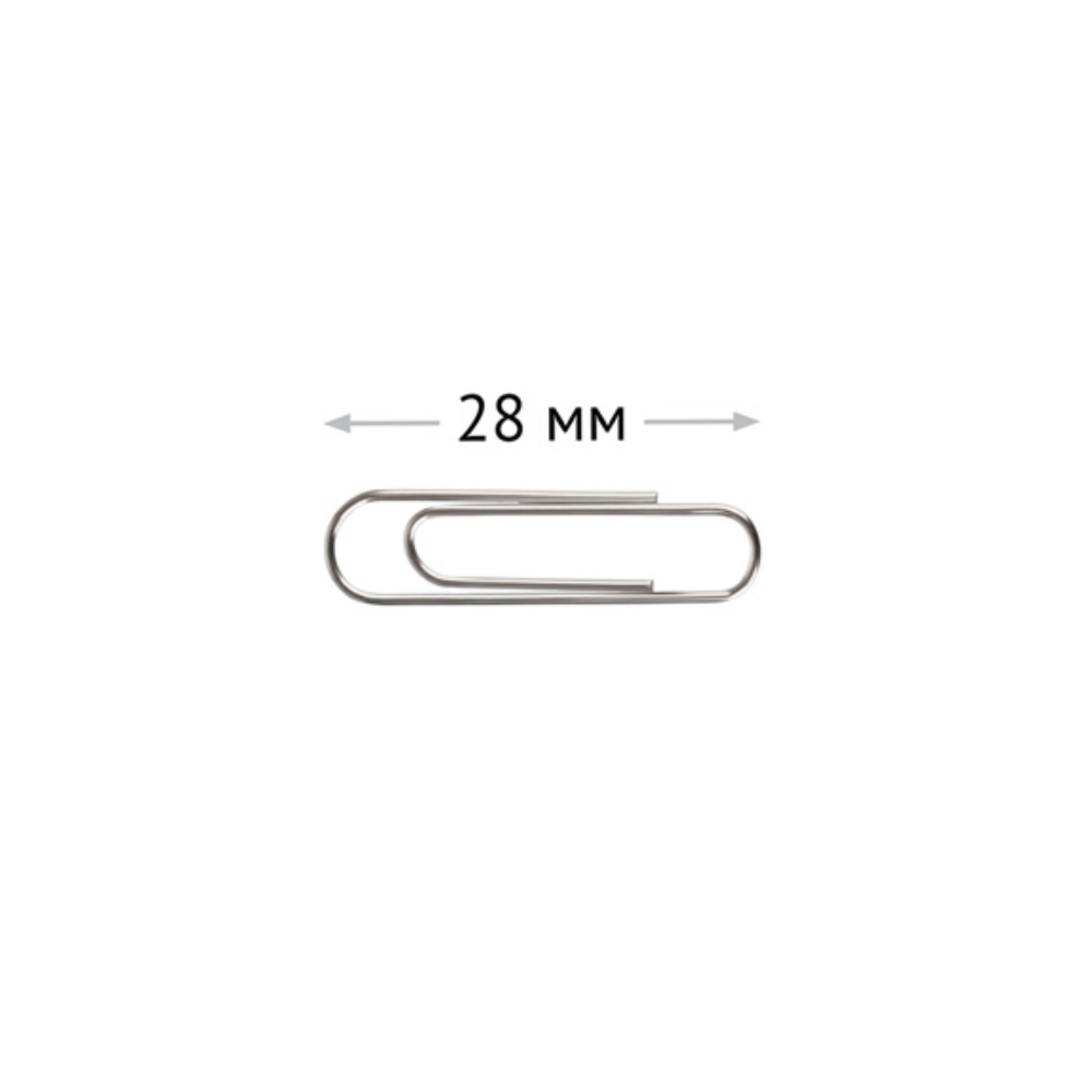 Металлические канцелярские скрепки. Гладкие, оцинкованные, стандартной формы. Надежно скрепляют документы, не деформируют бумагу. Размер скрепки - 28 мм. Упаковка в картонную коробочку по 100 шт.
