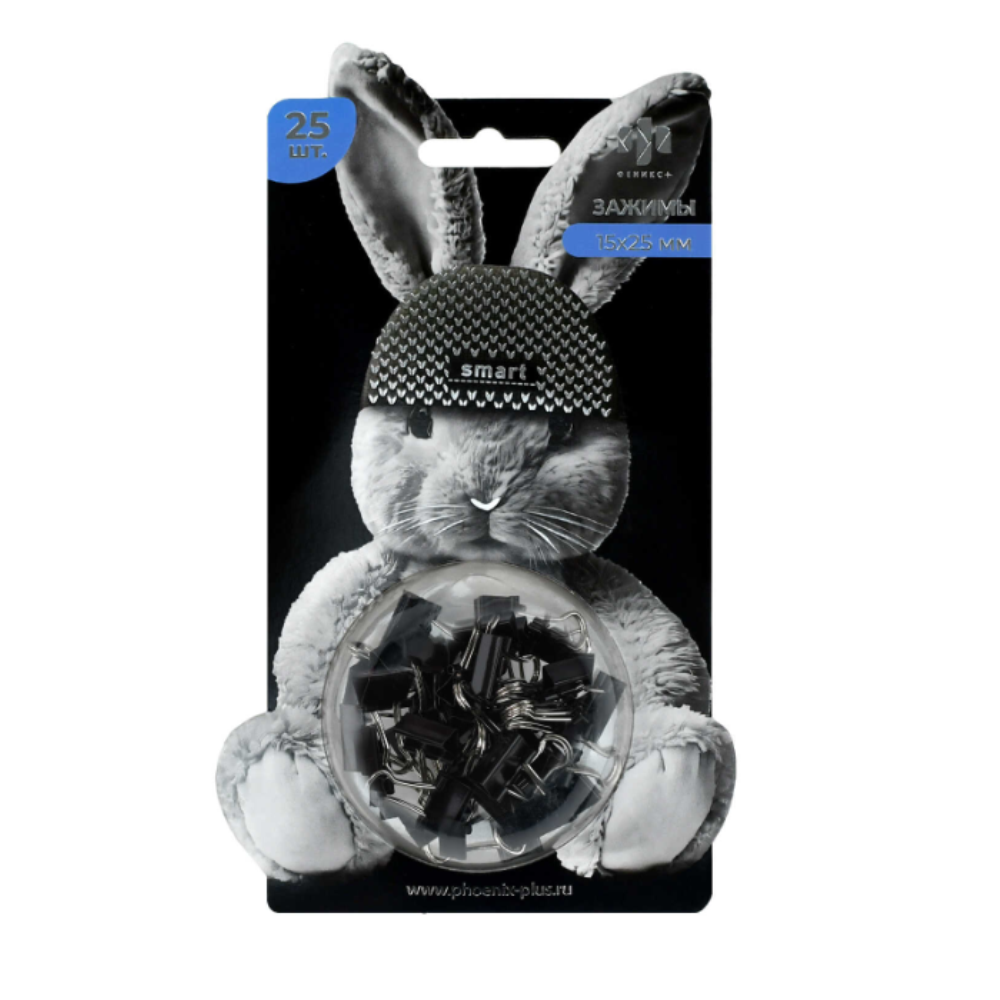 Зажим для бумаг 25 мм арт. 71497 ЗАЙКА В ШАПОЧКЕ 25 шт. в наборе, цвет чёрный 71497