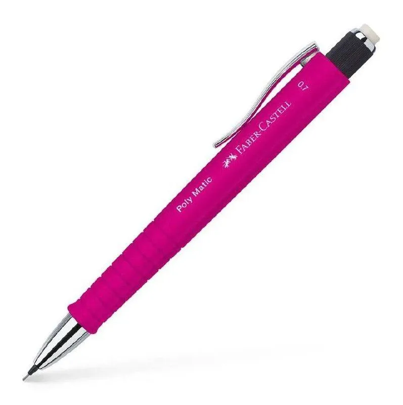 Механический карандаш Poly Matic от легендарного немецкого производителя Faber-Castell имеет мягкую нескользящую поверхность софт тач и эргономичную трехгранную форму, которая гарантирует высокий комфорт даже при длительном письме. Грифель карандаша выдвигается автоматически по мере его расходования, не требуется нажатие кнопки. Длинный выдвигающийся ластик. Сверхпрочный грифель 0,7мм. Карандаши поставляются в дисплее по 40 штук. Доступны в четырех привлекательных цветах корпуса: розовый, мятно-зеленый, серый и черный.