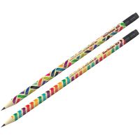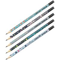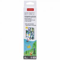 Карандаш чернографитный с ластиком твердость HB "Deep Forest" корпус трехгранный деревянный цвет ассорти с рисунком HATBER BL_065980