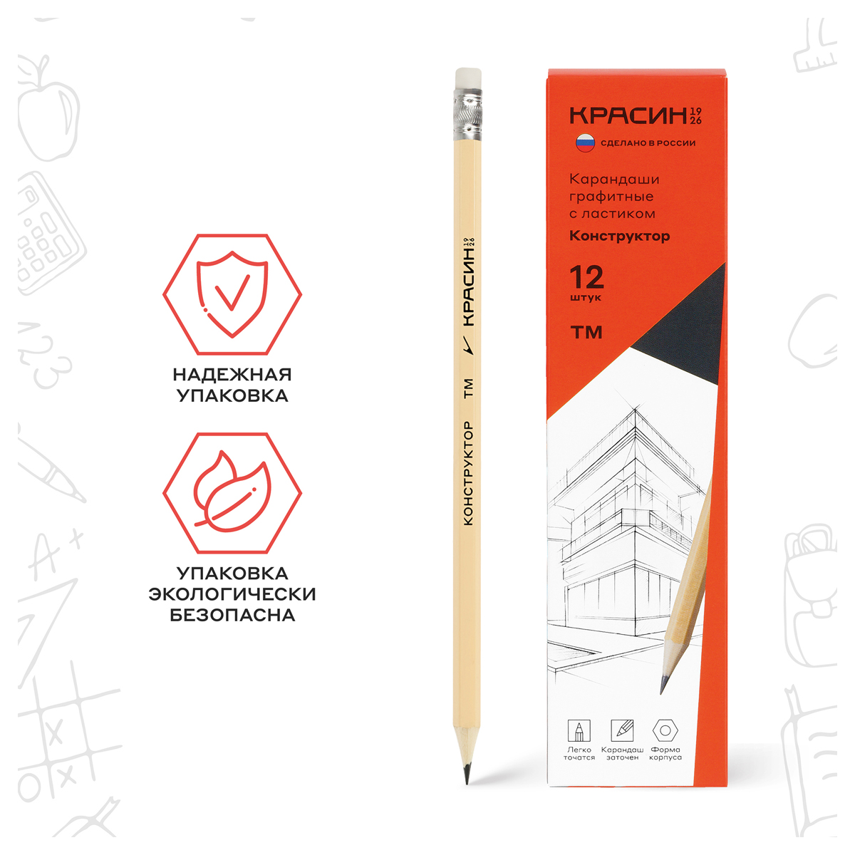 Карандаш чернографитный «Красин» серии «Конструктор» предназначен для макетирования, эскизирования, нанесения надписей и черчения. Изготовлен по технологии двойной тотальной склейки DSA: увеличивает прочность и надежность заклейки стержня в карандаше, предохраняет стержень от повреждений при падении, ударе и намокании, не изменяет цвет, упругость, прочность и чиночные свойства древесины в местах склейки. Корпус выполнен из дерева высокого качества, имеет шестигранное сечение. Диаметр карандаша составляет 7мм. Длина – 190 мм. Твердость грифеля – ТМ (HB). Карандаши производятся из сырья и материалов природного происхождения и качественной химически необработанной древесины. Стержень изготовлен из кристаллического уральского графита и голубой глины. Поставляется заточенным и оснащён ластиком. Безупречное качество даже для самых серьезных профессионалов! • Твердость: ТМ (HB); • Заточенный грифель: да; • Форма корпуса: шестигранная.