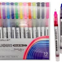Ручки роллер набор 12цв. DP-169 0,5мм, игольчатый стержень, круглый серый корпус, в уп ПВХ H-1014