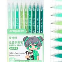 Ручки гелевые набор- 9 цв. DL-539 "Теплый зеленый" 0,6мм, игольчатый стержень, прозрачный корпус, в уп ПВХ LG-D0574 334534