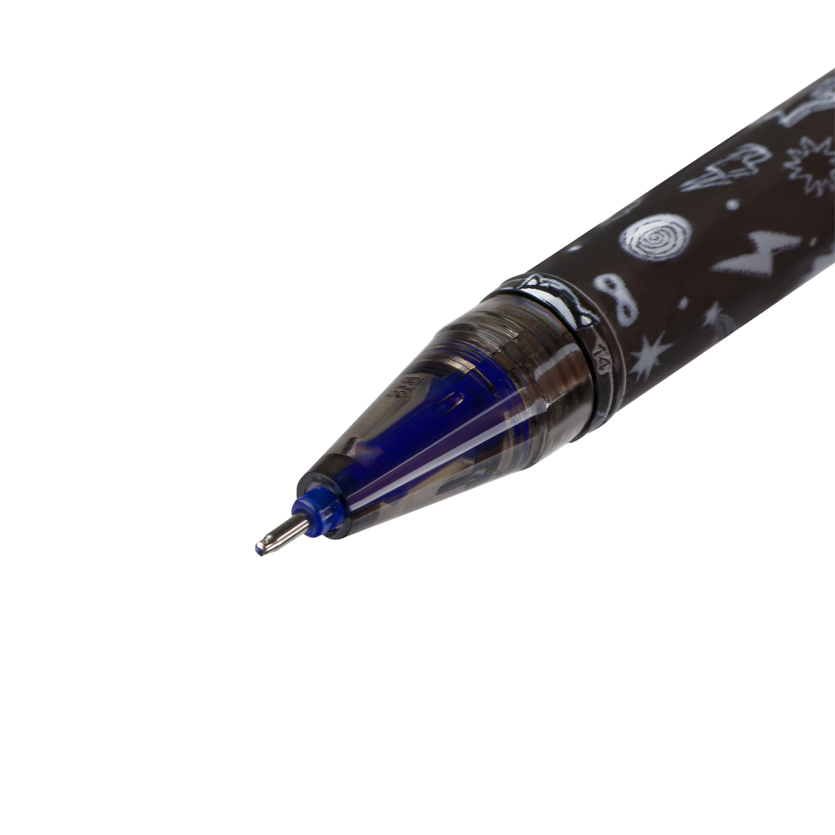 Описание: Гелевая стираемая ручка MESHU "Superhero" – это яркий дизайн с уникальными стираемыми чернилами внутри. Диаметр игольчатого пишущего узла – 0,5 мм, благодаря чему получается тонкая и аккуратная линия. Гелевые чернила синего цвета не только ярко пишут на бумаге, но и при воздействии температуры становятся невидимыми. Достаточно потереть написанное ластиком на кончике ручки. Обесцвеченные чернила проявляются при низкой температуре. Благодаря колпачку с клипом можно закрепить ручку на одежде или тетради.