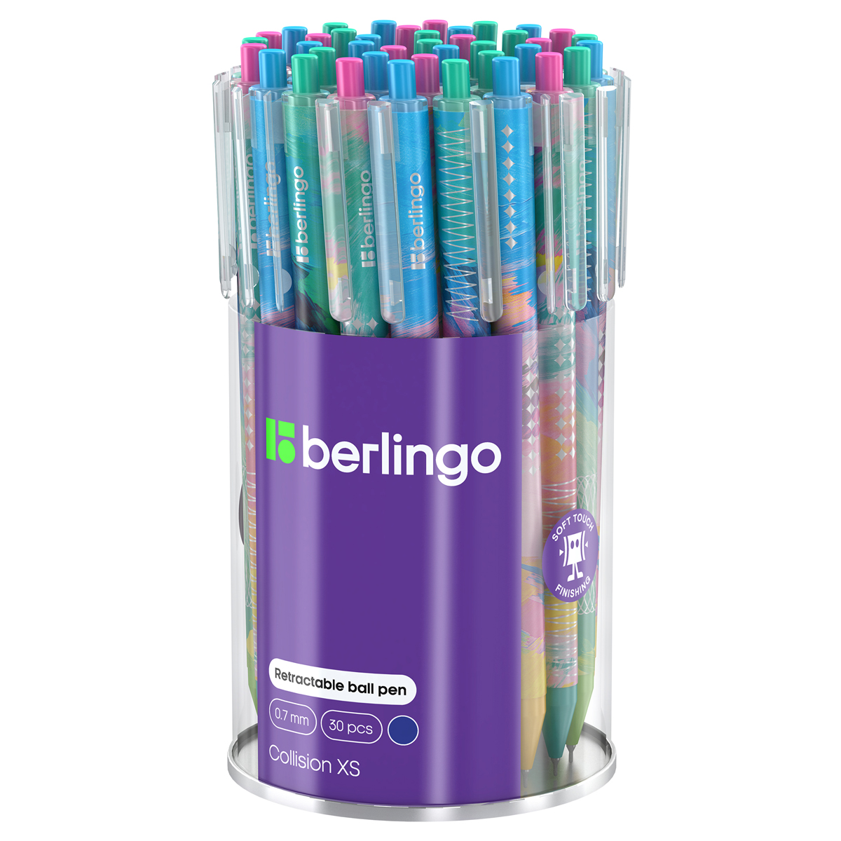 Описание: Ручка шариковая автоматическая с ярким дизайном коллекционной серии Berlingo "Collision XS" позволит выразить себя и передать свои идеи не только на бумаге. Диаметр пишущего узла − 0,7 мм, толщина линии письма − 0,5 мм. Цвет чернил − синий. Удобная и привлекательная упаковка − дисплей-туба 30 шт. Уникальная запатентованная технология Smart Ink обеспечивает лёгкое и приятное письмо без усилий за счёт чернил пониженной вязкости, специальной конструкции пишущего узла и инновационных материалов шарика. Приятное бархатистое покрытие корпуса soft-touch создает дополнительный комфорт при письме. • Технология Smart Ink; • Цвет чернил: синий; • Толщина линии письма: 0,5 мм; • Длина письма: 600 м; • Цвет корпуса: ассорти; • Упаковка - 30 шт. в дисплей-тубе.