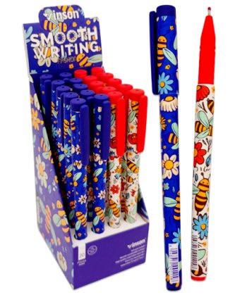 Ручка масляная VINSON DP-96 (син) 0,7мм FASHION "Пчелка в цветах" игольчатый стержень, корпус матовый с рисунком, ассорти, в к/кор A261