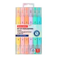 Набор текстовыделителей двусторонних 6 ПАСТЕЛЬНЫХ ЦВЕТОВ, BRAUBERG "Macaroon", линия 1-5 мм, 152513