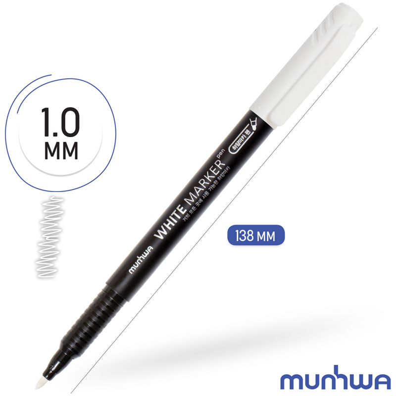 Устойчивый маркер с чернилами белого цвета отлично подходит для нанесения маркировки на большинство поверхностей: метал, стекло, пластик, дерево, бумага и т.д. Чернила обладают высокой светостойкостью, укрывистостью, непрозрачны, оставляют плотный яркий след. Пишущий состав на водной основе обеспечивает максимальную безопасность (не содержат ксилол и толуол). Время высыхания 15 секунд (зависит от типа поверхности). Длина непрерывной линии 250 метров (зависит от типа поверхности). Вес чернил 1,5 грамма. Диаметр пишущего узла – 1 мм. След от маркеров можно при желании удалить с непористых поверхностей с помощью влажной абразивной губки или смоченной в спиртовом составе салфетки. Маркеры являются устойчивыми и не предназначены для нанесения временной легко-стираемой маркировки