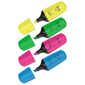 Мини-текстовыделители с флуоресцентными чернилами на водной основе. Изготовлены в компактных пластиковых корпусах без клипов с изящными рисунками на корпусе в цвет чернил. Длина непрерывной линии письма до 200 метров. Толщина линии письма от 1 до 5 мм.