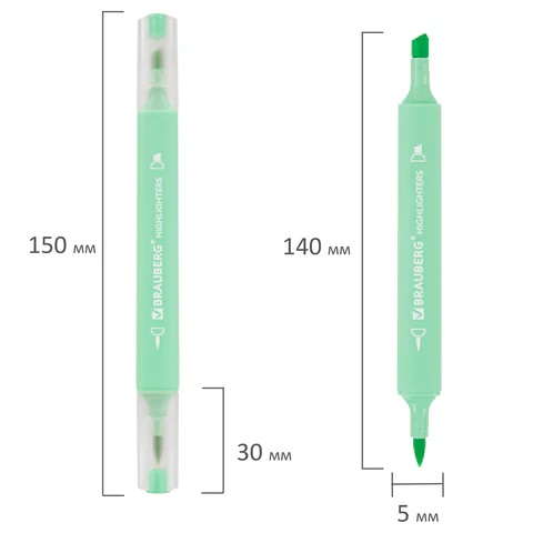 Двусторонние текстовыделители BRAUBERG TIP-D предназначены для выделения текста на бумаге любого типа. Идеально подходят для решения учебных, домашних и офисных задач.В наборе 6 двусторонних текстовыделителей пастельных цветов: ванильный, мятный, пастельный розовый, бирюзовый, лавандовый и персиковый. Нежные пастельные цвета позволяют создать мягкие переходы и равномерно подчеркнуть необходимую информацию в тексте. Цвет корпуса соответствует цвету чернил.Текстовыделители имеют корпус треугольной формы диаметром 13 мм. Одна сторона имеет скошенный наконечник с линией письма от 1 до 5 мм, что обеспечивает ровное непрерывное нанесение при работе с напечатанным мелким шрифтом текстом или таблицами. Вторая сторона имеет наконечник в виде кисти, что позволяет рисовать или закрашивать различные рисунки или надписи.Благодаря особой водной основе чернил текстовыделители не высыхают без колпачка в течение 8 часов. Текстовыделители обладают экономным расходом чернил, не портят бумагу, не смазывают текст и не просвечиваются.Выделяйте важное, структурируйте информацию, читайте с комфортом – в этом вам поможет набор текстовыделителей BRAUBERG TIP-D!