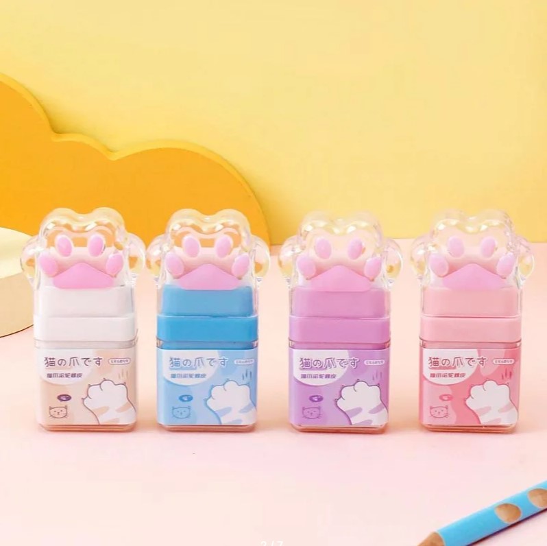 Ластик-роллер DI-689/DB-105 "Лапки" 65*30*15мм прямоугольный, в цветном пластиковом чехле, ассорти, к/коробке ER6059