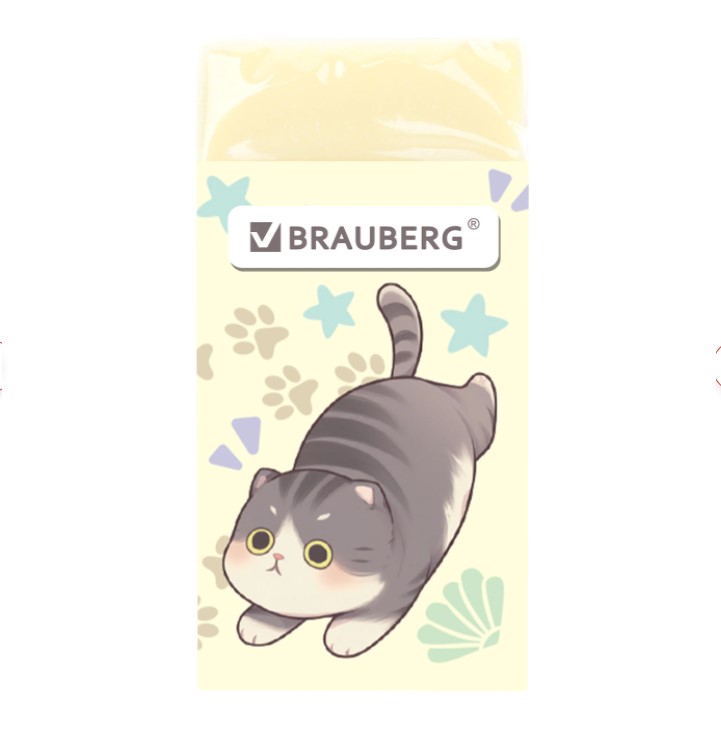 Ластик BRAUBERG "МИЛЫЕ КОТЫ" предназначен для удаления надписей, сделанных чернографитным карандашом. Изготовлен из современного материала – экологичного ПВХ. Картонный держатель с изображением забавных играющих котов поднимет настроение и поможет сохранить ластик чистым. Имеет прямоугольную форму, выполнен в четырёх вариантах цвета . Размер – 50х24х10 мм.