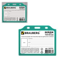 Бэйдж 60*90мм BRAUBERG горизонтальный, на зеленой ленте 45 см, 231153