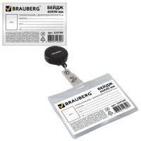 Бейдж BRAUBERG (БРАУБЕРГ), 60х90 мм, горизонтальный, с держателем-рулеткой 70 см, 235709
