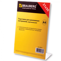 Подставка односторон.информационная 210*297мм "BRAUBERG",А4 верт. оргстекло,в пакете,290418