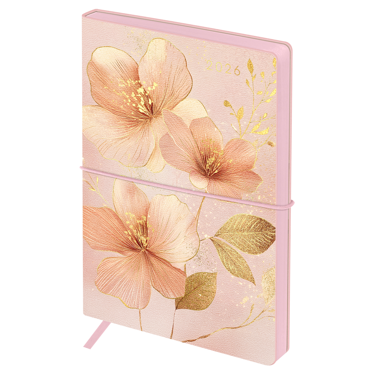 Ежедневник датированный 2026г., А6+, 176л., мягкий переплет, кожзам, BG "Ornament", персиковый, отд. фольгой, цветной срез, с резинкой, ШТ, DdА6+_09808