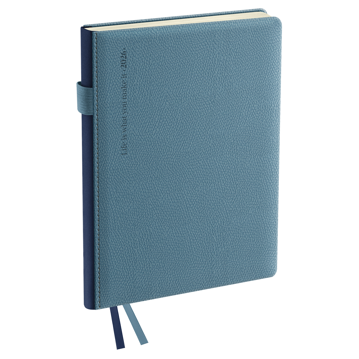 Ежедневник датированный на 2026 год BG серии "Palm" – идеальный компаньон для стильной и организованной жизни. Пухлая обложка с мягкой прослойкой выполнена из экокожи голубого цвета. Корешок в тон и мотивирующая фраза, нанесённая с помощью тиснения, придают стиль. Формат – А5 (145*205 мм). Изделие состоит из 176 листов тонированной бумаги плотностью 70 г/м2, которая подходит для любых типов ручек и не будет просвечиваться. В линованный блок с полем для даты и почасовым планингом удобно записывать встречи, идеи и задачи. Уголки листов с перфорацией. Две закладки-ляссе позволят быстро и легко найти нужную страницу, что делает навигацию по ежедневнику удобной и эффективной. Специальная петля из прочной резинки в цвет обложки подойдёт для фиксации ручек. В датированном ежедневнике предусмотрена справочная информация, ежемесячный планер, календарь и другие полезные сведения. Индивидуальная упаковка в термоусадочную пленку. Бренд предлагает функциональность и элегантный дизайн, которые делают ежедневники BG незаменимым инструментом для успешного планирования и организации. BG – с вами с 2001 года! • Формат: А5; • Размер: 145*205 мм; • Количество листов: 176; • Материал обложки: экокожа; • Цвет обложки: голубой.