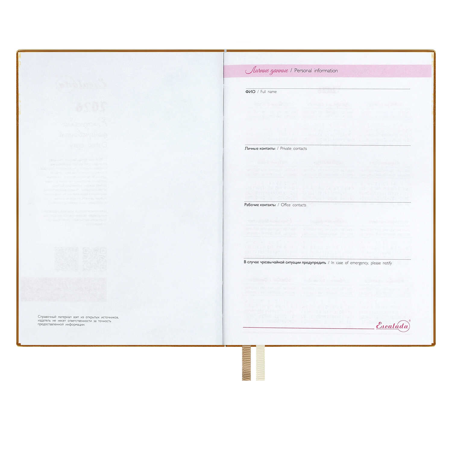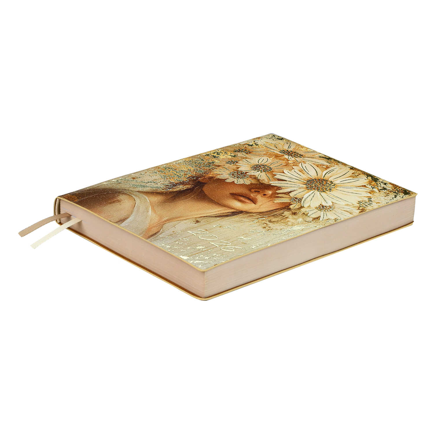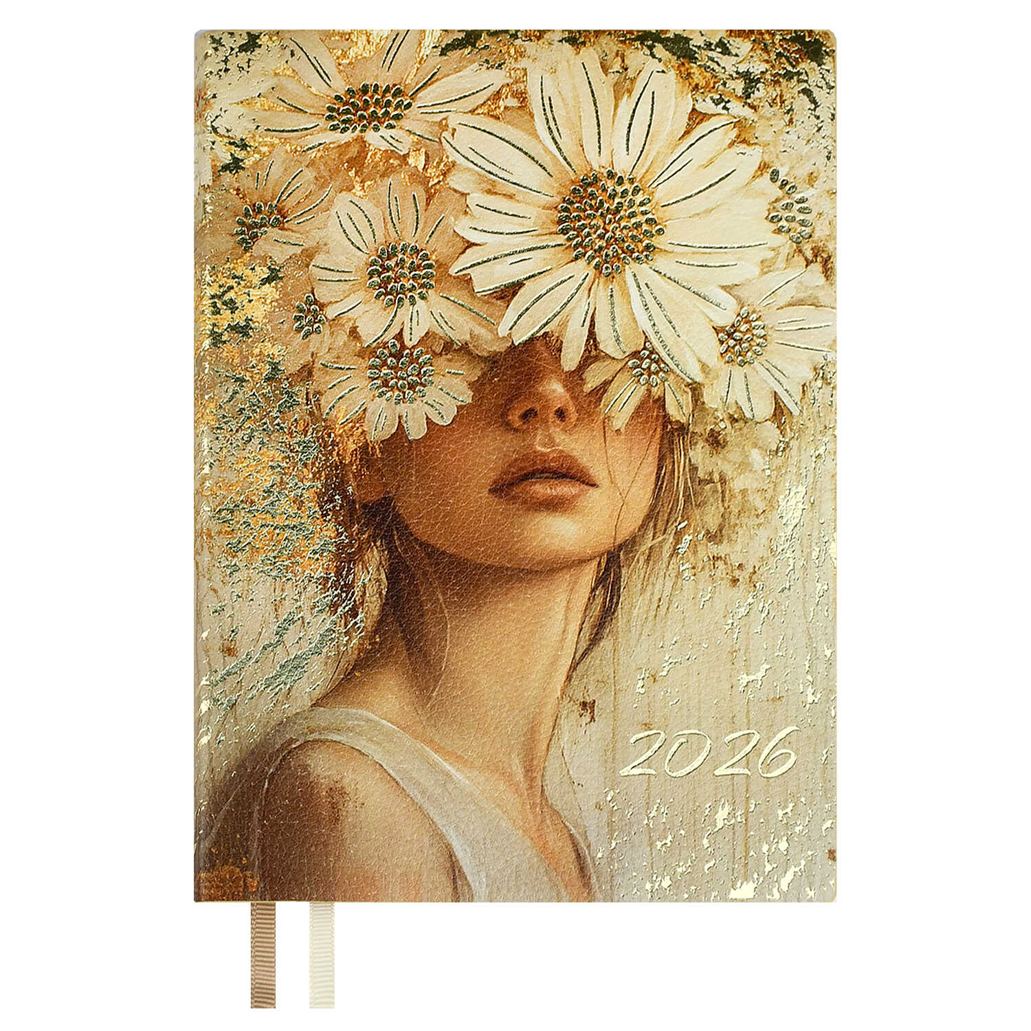 Ежедневник датированный 2026 ESCALADA, А6+, 176 л., арт. 70309/ 20 ЗОЛОТАЯ ЭСТЕТИКА (кожзам: 126х174 мм, мягкий переплёт, запаянный край, материал обложки: искусственная кожа "Наппа"; декор: печать полноцветная, тиснение фольгой; способ крепления блока: ниткошвейный; вн. блок: 176 л., кремовый офсет 70 г/м², печать в две краски (линия), справочный материал: есть; перфорация углов блока: нет; отделка среза: окрашивание пантоном; закладка/-и: два ляссе; каптал: есть; форзац: печать в одну краску; персонализация возможна: нет; индивидуальная упаковка: промостикер + ПЭТ-пакет)
