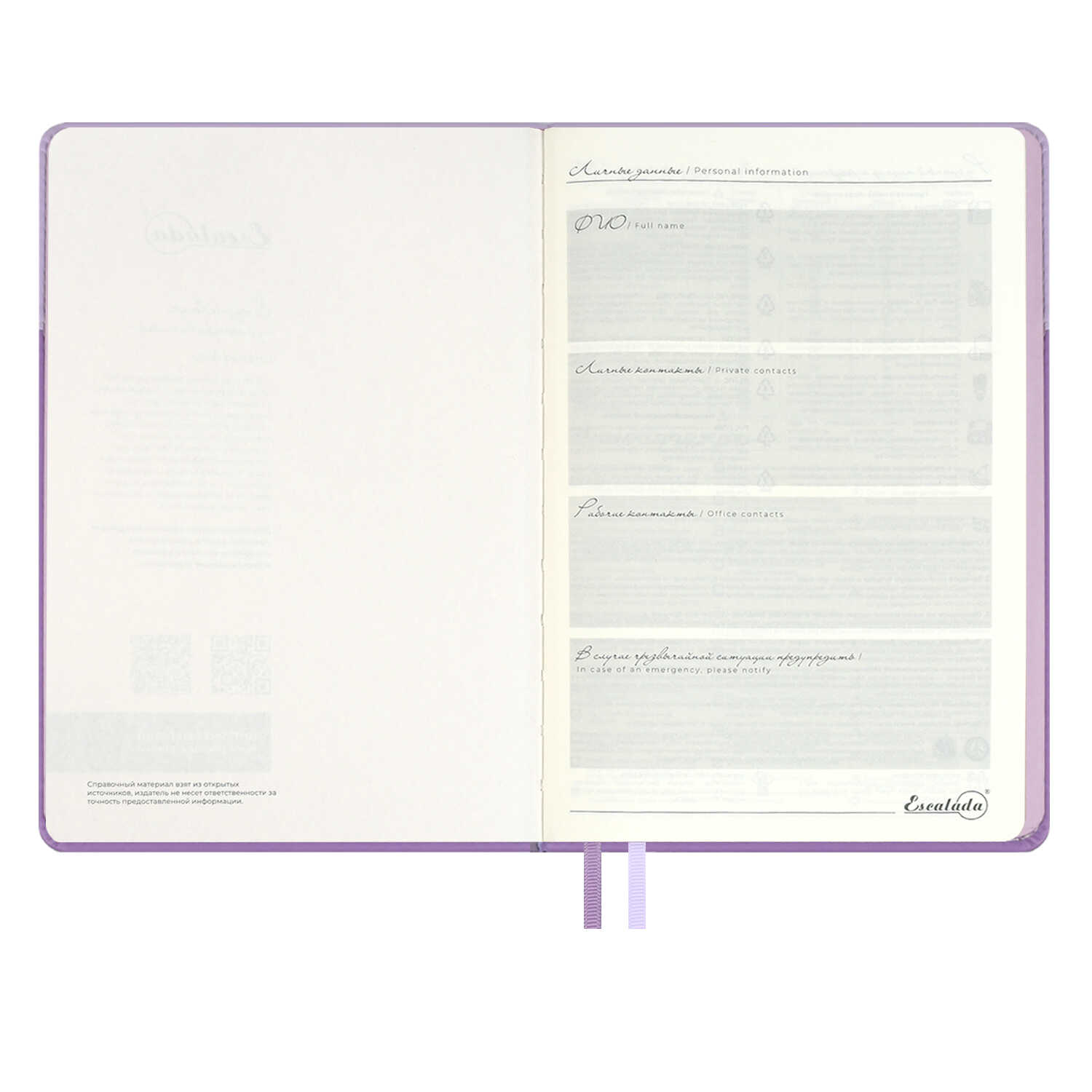 Ежедневник недатированный ESCALADA, А5, 160 л., арт. 70598/ 15 ЛАЙКА СИРЕНЕВЫЙ 70598