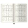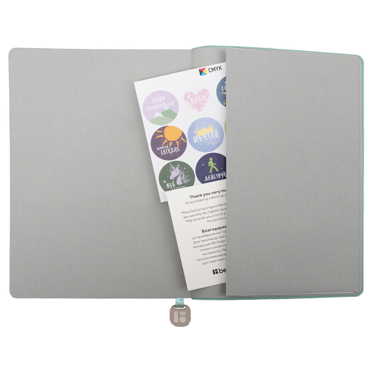 Классический недатированный ежедневник Berlingo "Elegance" формата А5 выполнен с обложкой из ультрамягкой зелёной экокожи с элегантным глубоким тиснением. Срез в цвет обложки придаёт дизайну завершённость. Закладка-ляссе оснащена декоративным элементом. Внутренний блок состоит из 136 листов кремовой бумаги повышенной плотности 80 г/м² с пантонной печатью в две краски. Размер ежедневника — 155*213 мм. Обновлённый блок включает разделы для организации рабочего времени и систематизации личных планов, а также мотивирующие цитаты на каждый день. Раздел с постановкой годовых целей с разбивкой на этапы помогает сохранять фокус на самом важном. От.дельный блок отрывных листов предназначен для заметок, а дополнительный внутренний конверт — для хранения важных записей. Закладка-ляссе обеспечивает ещё больший комфорт при использовании. В комплект входят красочные наклейки, которые станут приятным подарком. Ежедневник упакован в индивидуальный брендированный пакет с клеевым клапаном.