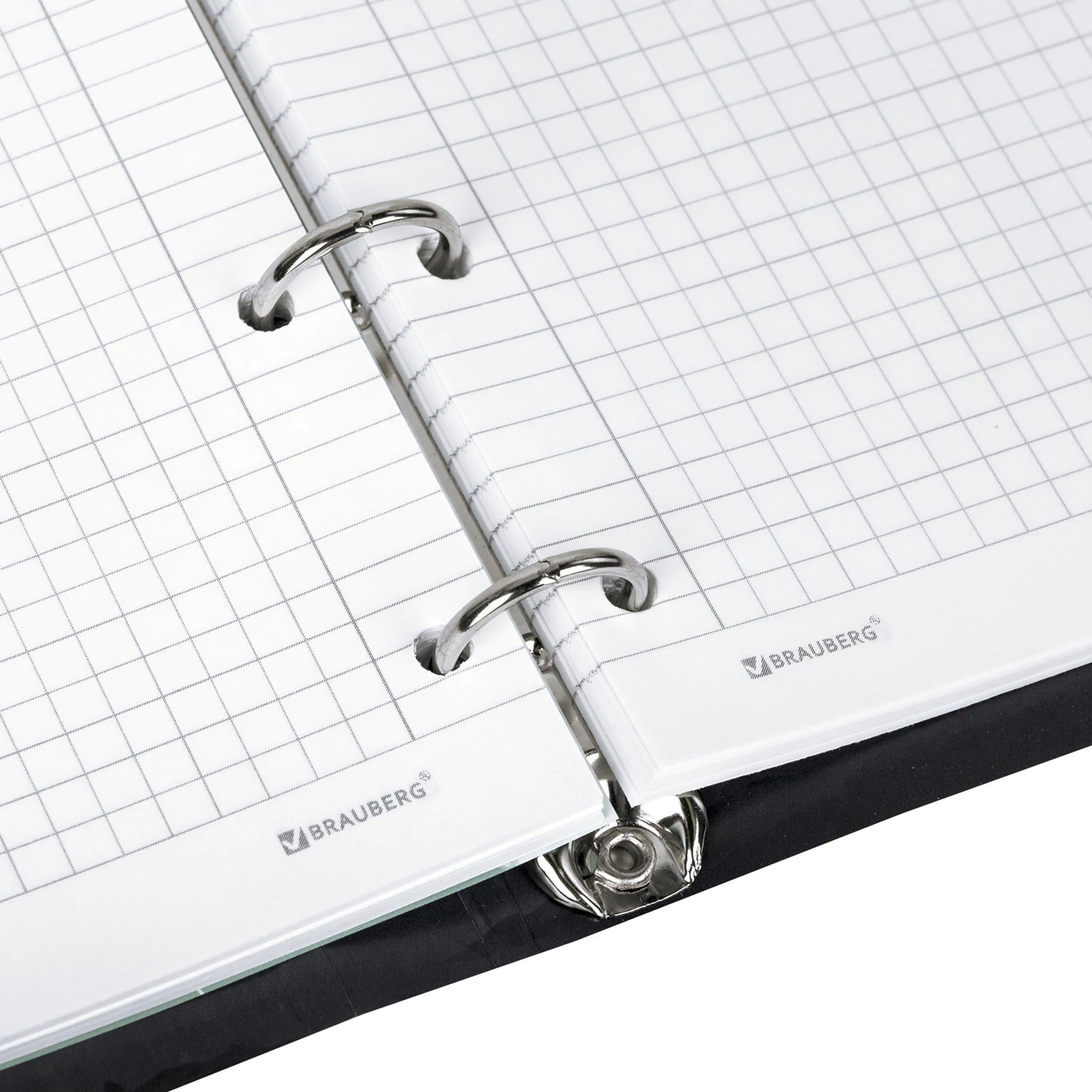 Удобная, практичная тетрадь BRAUBERG для учебы и работы со сменным блоком и гибкой ламинированной обложкой.Блок состоит из 120 листов офсетной бумаги белого цвета плотностью 60 г/м2. Линовка – клетка. Обложка выполнена из плотного слим-картона с высечкой под кольцевой механизм, имеет цветной форзац и покрытие матовой пленкой с отделкой выборочным лаком.Формат А5 является стандартным, поэтому тетрадь удобно носить в рюкзаке/ранце или папке. Оборудована кольцевым механизмом с 4 кольцами для подшивки сменных блоков, что позволит брать на учебу/работу всего одну тетрадь с возможностью добавлять и менять листы.