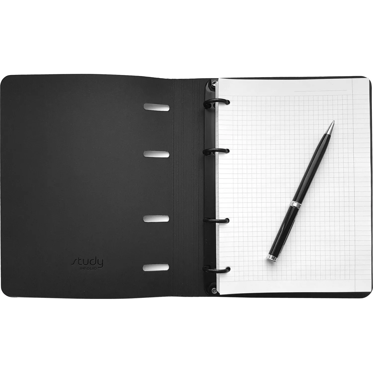 Тетрадь на кольцах со сменным блоком Infolio Study Formula А5 120 листов чёрная в клетку с перфорацией, трафаретная печать
